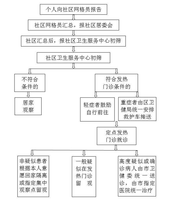 四、切实遵守相关规定。在校师生如出现发热症状,要按照洪山区发热病人分级分类就医服务流程进行预检分诊(流程附后);经发热门诊诊断有肺炎症状的发热病人和新型肺炎病人的密切接触者,由民大社区上报关山街、洪山区防控指挥部,协调安排车辆分别送至区集中隔离观察点,进行医学观察、治疗或采取其他预防措施。校外师生要积极配合当地做好疫情防控,不要提前返校;教师及家属有特殊情况需返鄂返汉人员,须由所在地村委会(社区)出具隔离期满14天、身体无异常相关证明,由所在单位或社区向洪山区防控指挥部提出申请,经审核同意后返回;各单位要做好返回人员的隔离和健康管理,及时向学校疫情防控领导小组办公室报告相关情况。