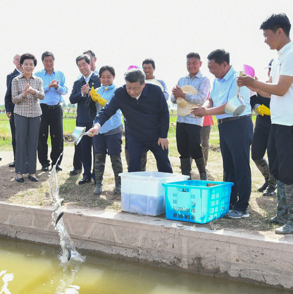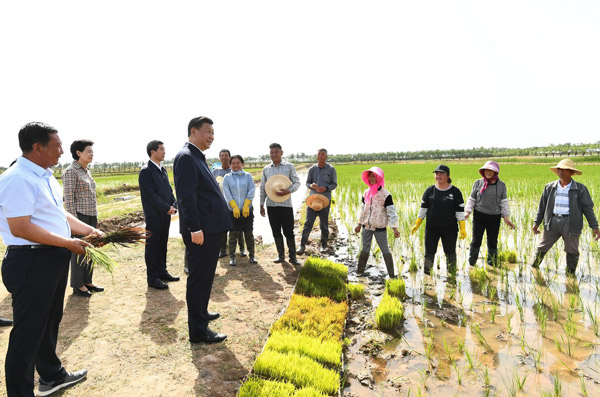 习近平总书记9日在银川考察调研。他先后来到贺兰县稻渔空间乡村生态观光园、贺兰山东麓葡萄种植园,了解当地发展特色农业产业、加强贺兰山生态保护等情况。
