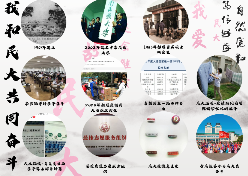 首先是“我和我的民大共奋斗”主题作品征集大赛,分为文字、图片、短视频征集。文字作品征集内容以“我和我的民大共奋斗”为主题,讲述个人与母校共同成长中披荆斩棘、攻坚克难的励志故事,展现出民大师生不畏艰险、艰苦奋斗、踏实前行的精神状态;短视频征集则以“我的民大,‘别人家’的大学”为主题,讲述民大对学生的暖心资助、热心服务以及以生为本的育人故事;图片征集以“励志奋斗”为关键词,以学校变化、个人成长为主线展示出学校及个人的新变化、新面貌、新风采。此次活动共征集到46份作品,其中文字作品22 份、短视频作品12份、 图片作品12份。