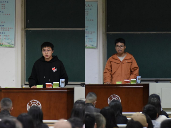 随后,入党积极分子学员代表2020级郑博文、发展对象学员代表2020级李士熹同学上台发言。他们代表全体同学郑重承诺:作为新世纪的新青年,认真严肃的对待每一次学习,努力实践,开拓进取,勇于创新,不断提高自身素质。