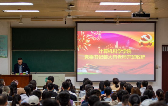 2021年10月15日下午六点半,计算机科学学院秋季学期党校培训班开班典礼于11栋200教室举办。计算机科学学院党委书记黎大有老师,院长覃俊老师,党委副书记田磊老师,以及各年级辅导员出席了此次开班典礼,会议由带班老师王魏芳主持。