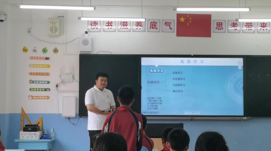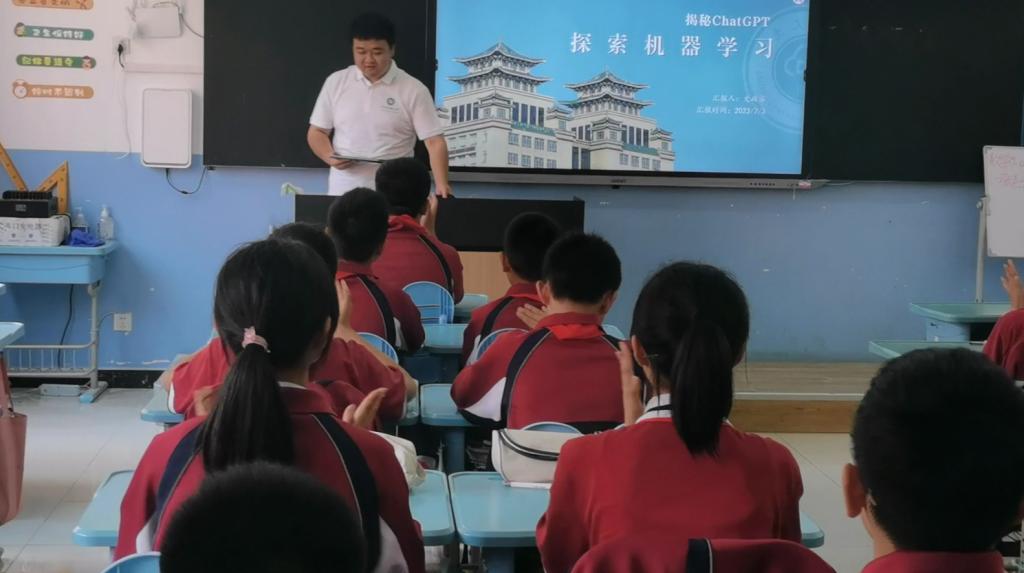 2023年7月3日,为弘扬科学精神、普及科学知识,激发青少年科学梦想和科学志向,培养学生的科学素养,丰富安顺地区人工智能与信息安全知识传播与普及,推动全民科学素质建设和提升,经安顺市政府办秘书一科刘洋科长的协调与陪同,必赢国际437官网计算机科学学院朱剑林老师指导的平安顺意科普小队在安顺市经开区教育局副局长、安顺市实验学校(经开区分校)校长梁冬洪与执行校长杨苧的大力支持下,赴安顺市实验学校(经开区分校)七年级一班开展以“揭秘ChatGPT,探索机器学习的世界”以及“如何做好数据的保密性”为主题的科普活动。