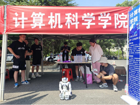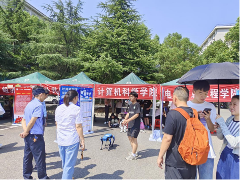 金秋九月,又是一年一度开学季。2023年9月7日上午9:30分,计算机科学学院迎新站点热闹非凡,学院“迎新机器人”滑着太空步、做着后空翻热情迎接着新生的到来。