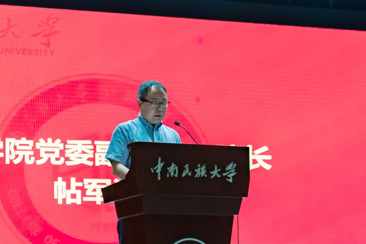 开学典礼在雄壮的国歌声中拉开帷幕,学院党委副书记、院长帖军代表领导班子讲话,他从办学规模、专业覆盖面、未来就业、学生创新团队和班导师制度等五个方面向同学们介绍了学院的基本情况,希望同学们在大学中永远保持一颗开放的心态、求知的心态、进取的心态,努力找到适合自己成长的土壤。