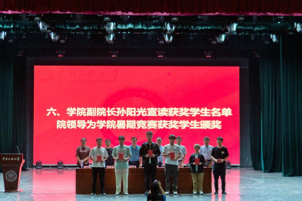 随后,学院副院长孙阳光宣读获奖学生名单,院领导为学院暑期竞赛获奖学生代表颁奖。