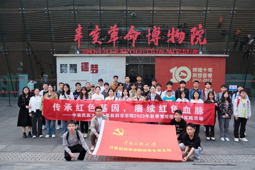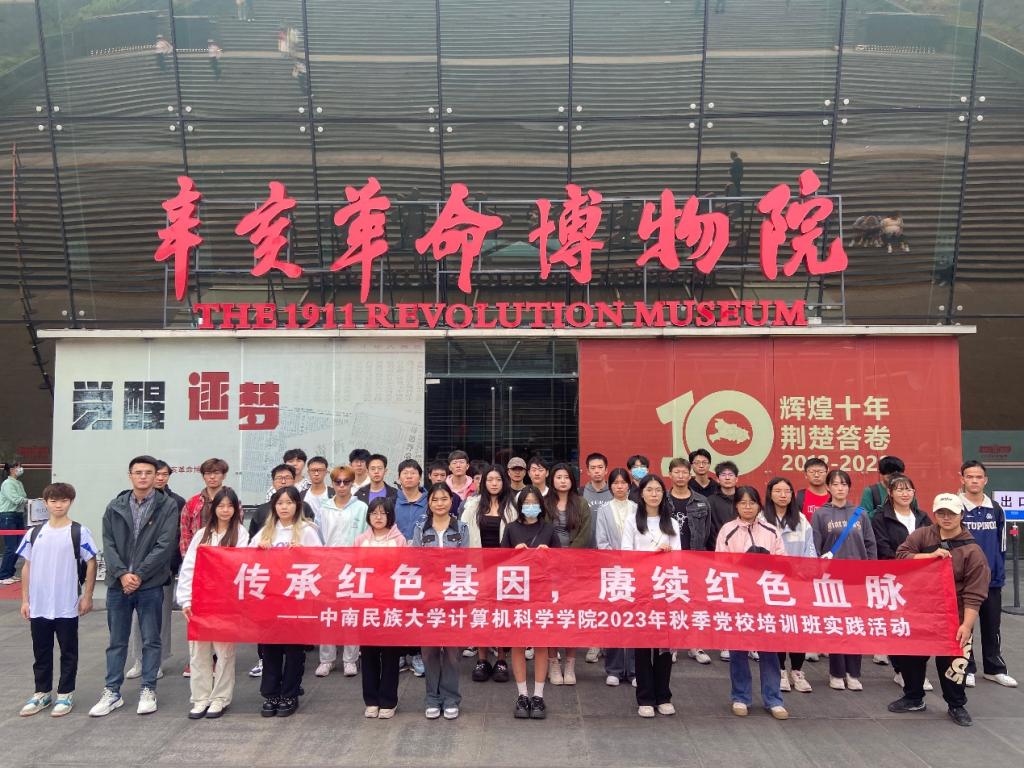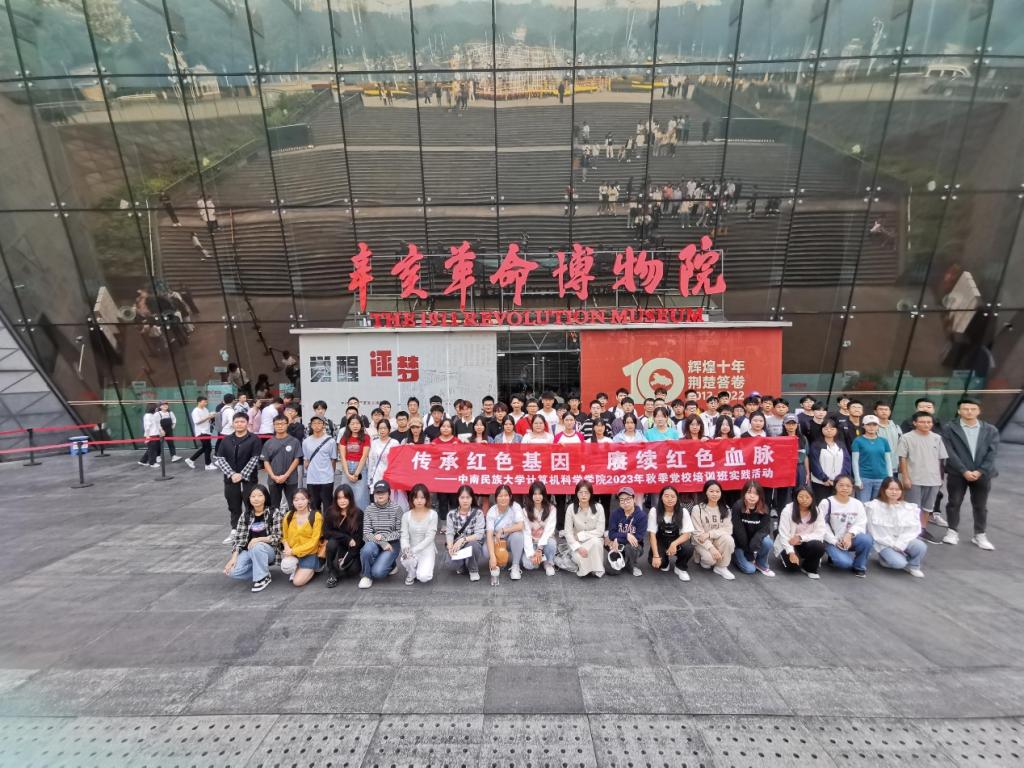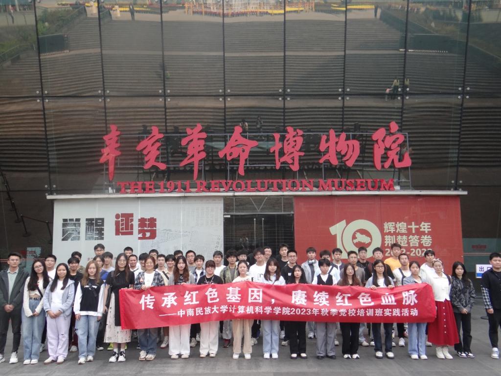 传承红色基因,赓续红色血脉。为深入学习习近平新时代中国特色社会主义思想,全面贯彻党的二十大精神,引导大学生坚定理想信念、加强党性修养,10月26日,计算机科学学院2023年秋季党校培训班开展社会实践活动,组织本期党校144名入党积极分子、106名发展对象和13名预备党员前往辛亥革命博物馆缅怀革命先烈,传承革命精神,学院党校联络人沈易军、2022级辅导员祝梦欢、2021级辅导员朱浩军带队参加。