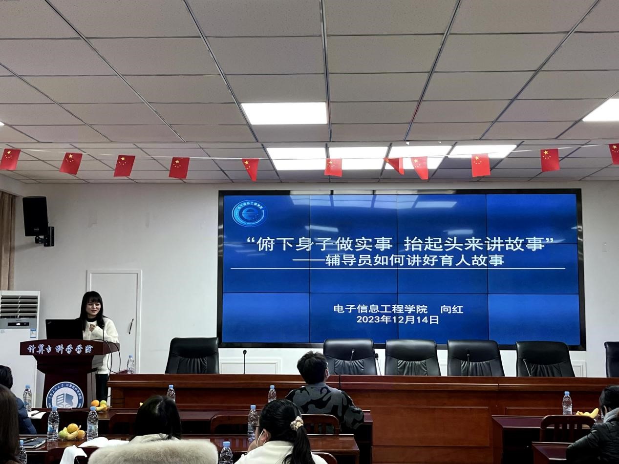 本期“辅导员思享汇”的主题为“俯下身子做实事,抬起头来讲故事——辅导员如何讲好育人故事”,由电子信息工程学院学工办主任向红担任分享人。向红老师具有丰富的学生工作经验,连续两年获得湖北省辅导员职业能力大赛二等奖。在今年4月,向红老师组建“和合”工作室,获批国家民委首批“道中华”工作室;6月,获批湖北省教育厅辅导员工作精品项目1项。