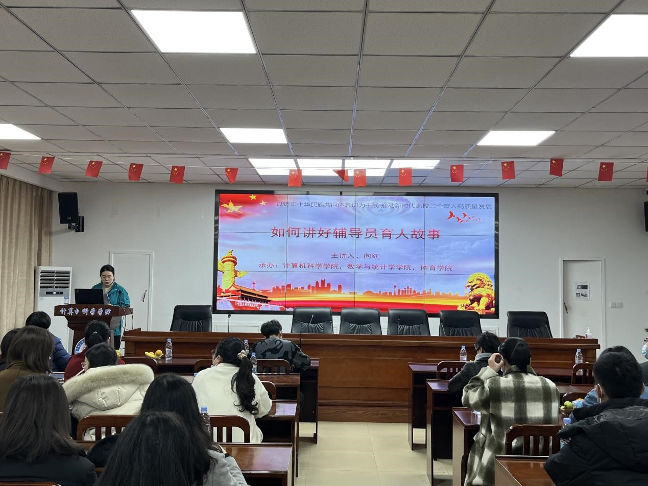 为深入学习贯彻习近平新时代中国特色社会主义思想和党的二十大精神,贯彻落实立德树人根本任务,扎实推进铸牢中华民族共同体意识教育,提升辅导员队伍专业素质能力,12月14日,在党委学生工作部的指导下,计算机科学学院、数学与统计学学院、体育学院共同承办的第八期“辅导员思享汇”活动顺利举行。本次活动由计算机科学学院专职辅导员由永慧主持,全校50余名专职辅导员参加。