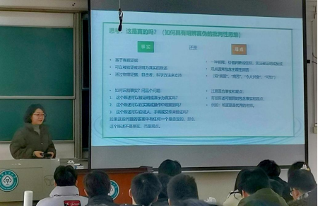 杨波老师围绕《离散结构》课程第二讲“命题和命题联结词”专题进行讲解。首先以社交媒体中的一则短视频为例向学生提出问题:视频的内容是真的还是假的?如何具有明辨真伪的批判性思维?接着解释了事实和观点的不同,如何识别事实、观点和混杂了事实的观点;结合命题的定义得出了观点没有真假,不是命题的结论。杨波老师通过将命题逻辑的基本理论和现实案例紧密结合,引导学生逐句分析短视频中的陈述,发现全部都是混杂了事实的观点,前后矛盾。并以此向学生强调,在当今AI技术快速发展的时代,我们更应该具有明辨真伪的批判性思维能力,而这需要我们主动深入学习并在生活中实践。