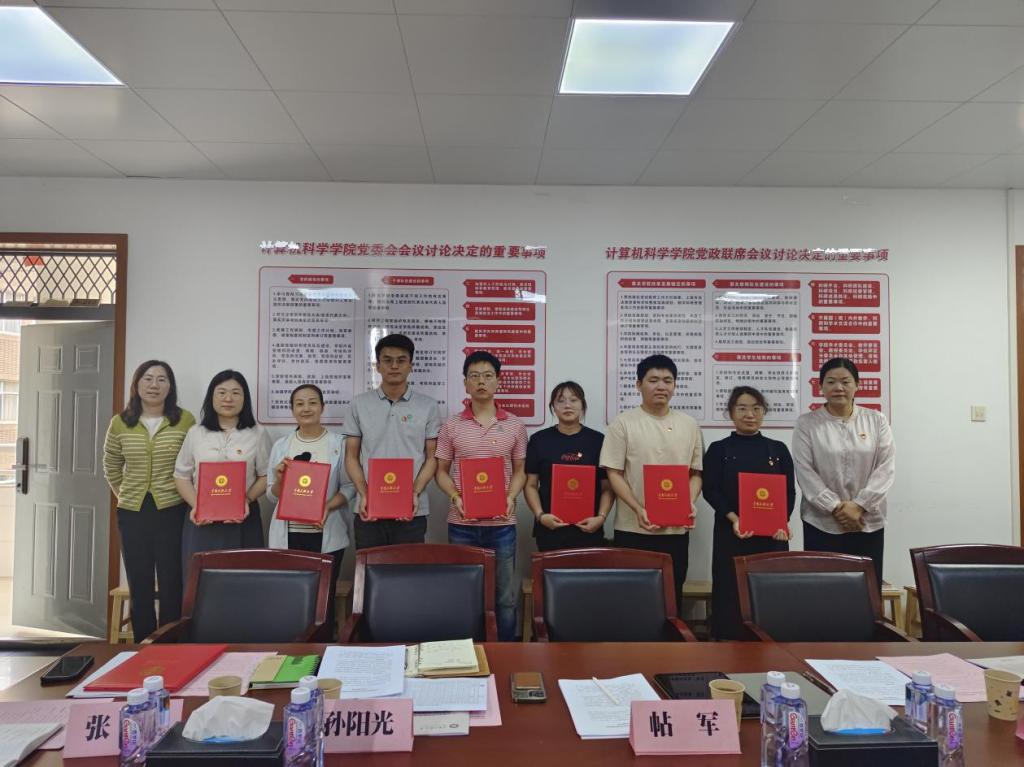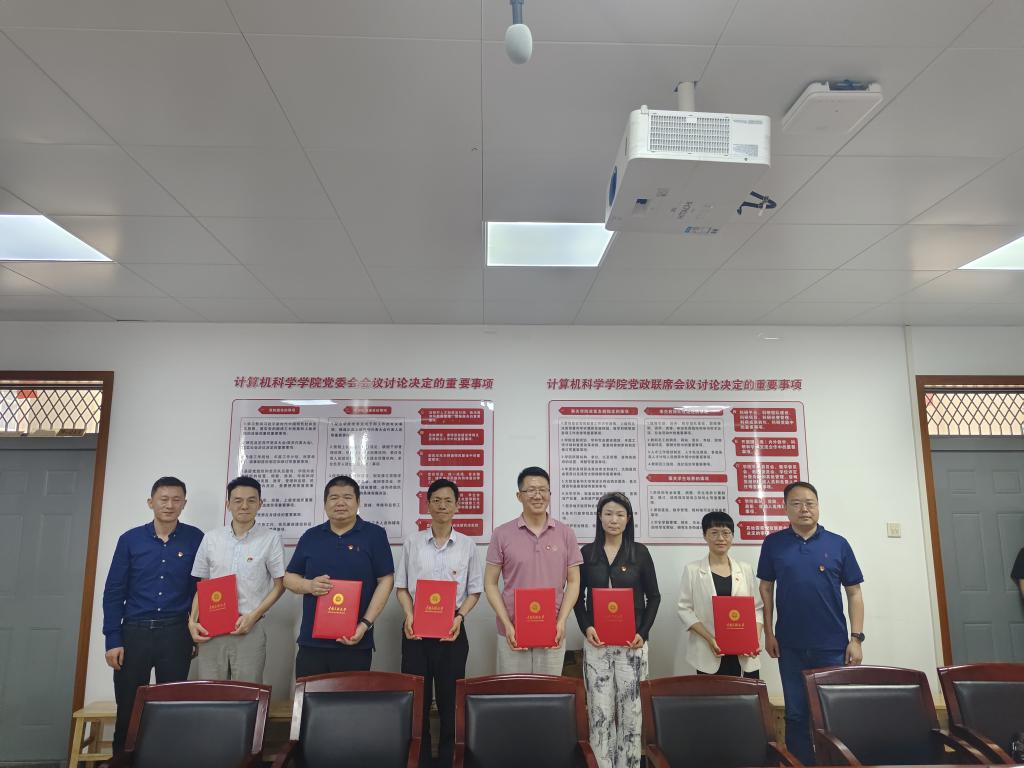 座谈会上,校党委组织部常务副部长周刚与学院党委副书记、院长帖军共同为教师党支部授予党建品牌建设任务战表,组织部副部长谭雪霏与学院党委副书记王魏芳共同为学生党支部授予党建品牌建设任务战表。随后,计算机科学与技术党支部书记徐科汇报了校级样板支部建设情况。