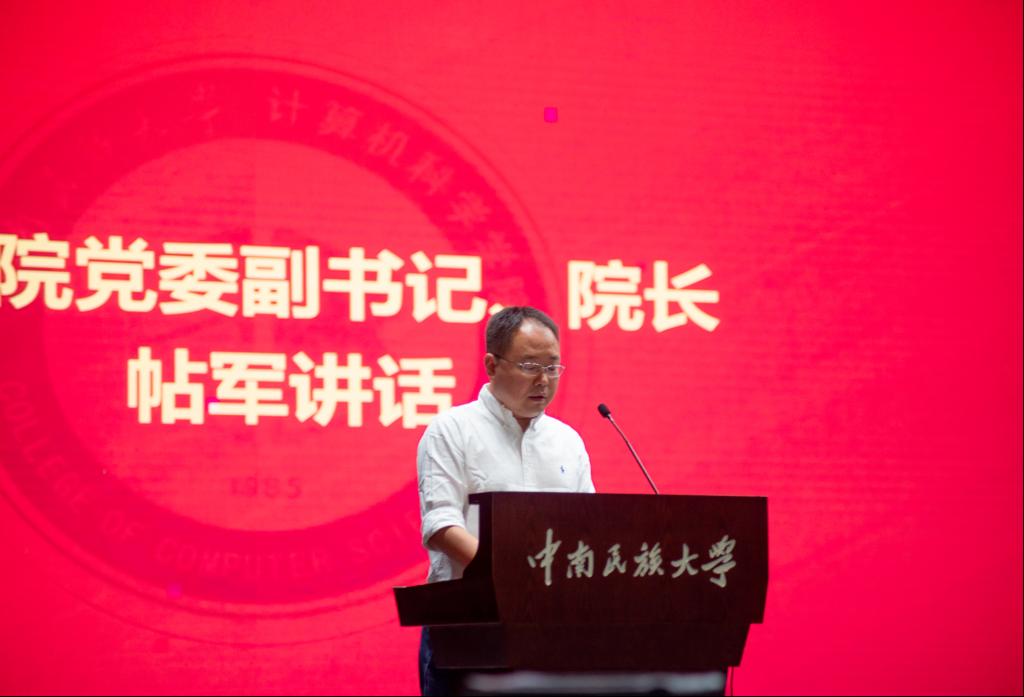 开学典礼在雄壮的国歌声中拉开帷幕,院长帖军教授讲话时表示“大学是成长成才的重要平台,希望同学们进入大学要做好规划,尽快立下四年的flag”,他围绕计科院的五个特点,详细阐述了学院的办学规模、专业覆盖面、未来就业、学生创新团队与班导师制度,并形象的将人生比作CPU、内核、显卡与操作系统,希望同学们能够把握宝贵的大学时光,四年后进入全新的人生阶段。
