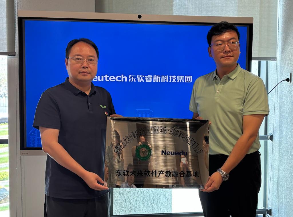 最后,在与会嘉宾共同见证下,帖军院长与任志龙总经理代表双方为“东软未来软件产教融合基地”正式授牌并合影留念。此次授牌是双方合作的新里程碑,为培养适应数字经济与人工智能时代的高素质软件人才奠定了坚实基础。