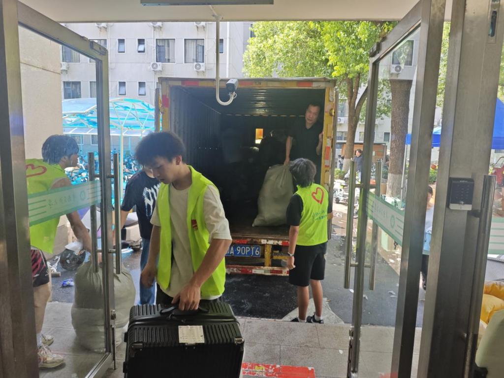 宿舍调整当天,现场气氛热烈而有序。志愿者分工明确、配合默契,有的同学在宿舍内认打包行李,将衣物、书籍等物品整齐归类,有的同学在楼道上奔忙搬运,合力将一件件行李搬上车辆;在18栋宿舍楼下,志愿者们穿梭其间,负责装卸行李、归置物品、协助搬运,确保每位同学的行李都能安全、准确送达。