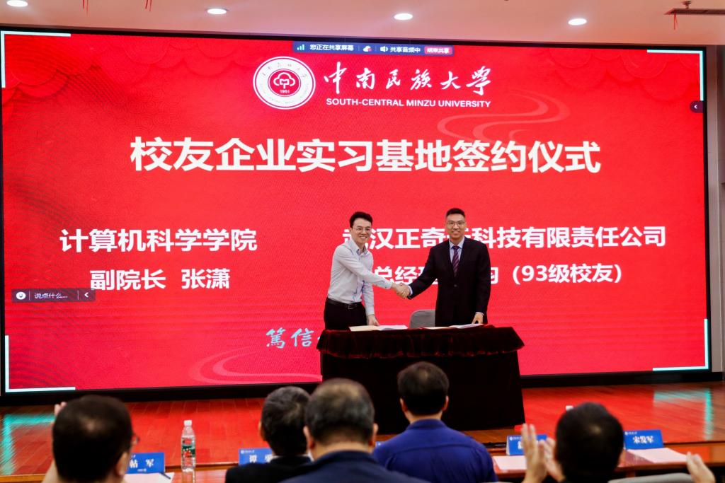 校友企业实习基地签约仪式在热烈的掌声中拉开帷幕,计算机科学学院与武汉正齐云科技有限责任公司、武汉希嘉万维科技有限公司、苏州美必家环境科技有限公司签署合作协议,校企双方共同展开前瞻性技术和关键共性技术研究,并进行产学研转化,展开创新融合和跨界战略合作。