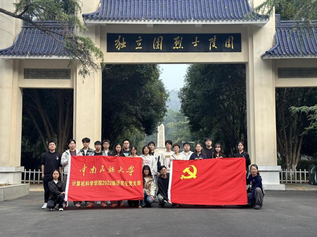 一寸山河一寸血,一抔热土一抔魂。为全面落实计算机科学学院党委“铸魂育人、数智强国”党建工作品牌建设方案,2024年11月15日,计算机科学学院2022级研究生党支部赴北伐独立团烈士陵园开展主题为“缅怀先烈强党性,传承精神共奋进”的爱国教育实践活动,旨在通过祭扫烈士陵园,深切缅怀革命先烈,传承红色基因,赓续红色血脉,感受革命先烈的英勇事迹和崇高精神,增强文化自信和民族自豪感,不断引领同学们传承和弘扬以爱国主义为核心的民族精神。
