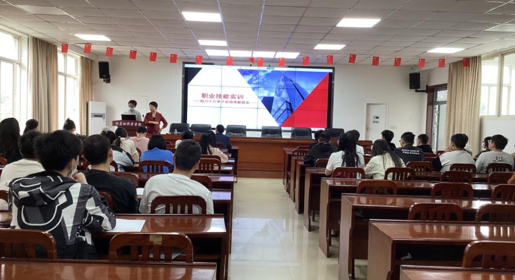 该公司本次宣讲的主题是“职业技能实训-助力千万学子实现高薪就业”,主要介绍了深圳中科育成公司的四大业务:产业地产、先进技术转化赋能、帮助企业培养上市、专项技能人才培养。同时,公司简介、人才孵化实训基地、岗位介绍以及合作企业展示等内容也在宣讲中进行了详细介绍。