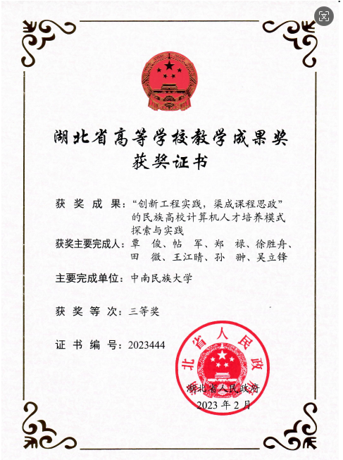 图3. 计科专业人才培养模式获教学成果奖