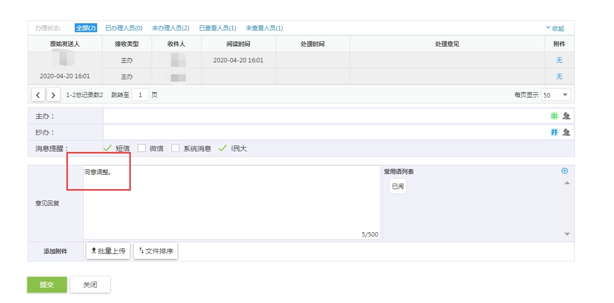 2.教学院长审批请给予明确意见回复,如“同意调整”等。