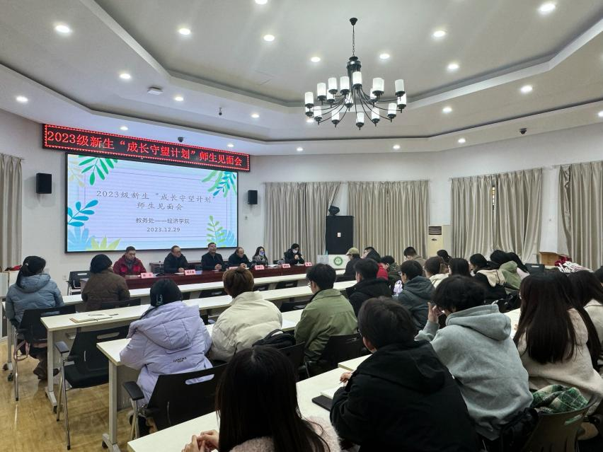 为进一步做好新生教育管理工作,2023年12月29日下午教务处与经济学院在四号教学楼八角楼会议室联合开展2023年“成长守望计划”师生见面会。教务副处长李明立、耿亮、陈晓希、刘晶,经济学院党委书记戴迎峰,党委副书记刘君强,经济学院新生辅导员、“成长守望计划”入选学生参与此次见面会。会议由李明立主持。