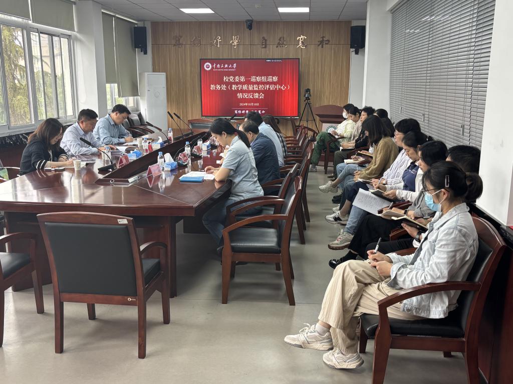 为进一步强化本科教育教学以铸牢中华民族共同体意识为主线,推动学校本科教育教学高质量发展,根据学校党委关于巡察工作统一部署和安排,校党委第一巡察组对教务处开展铸牢中华民族共同体意识专项巡察。10月10日下午,专项巡察反馈会在教务处会议室召开。校纪委副书记、纪委办公室主任、党委巡察办公室主任、监察处处长肖强,校党委第一巡察组组长柯尊韬、副组长谭雪霏,教务处全体人员参加会议。会议由教务处处长胡军浩主持。