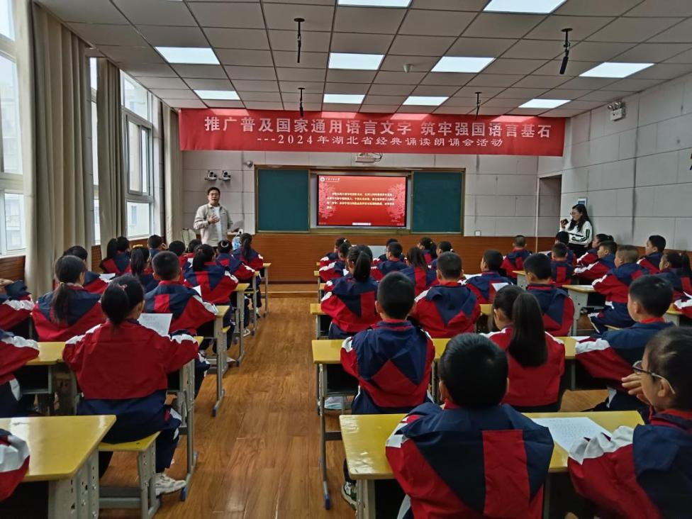 11月1日,由学校国家语言文字推广基地选派的省级普通话测试员、教务处学籍管理科科长陈慧和学校2024年青年教工读书演讲比赛二等奖获得者、文传学院辅导员龚观深入湖北省恩施州巴东县溪丘湾乡中心小学和溪丘湾社区股份经济合作社,开展主题为“加大推普力度,筑牢强国语言基石”2024年湖北省经典诵读朗诵会活动。活动现场开展了经典诗文诵读教学、朗诵展示、发音语调指导、汉语词典赠送等活动。