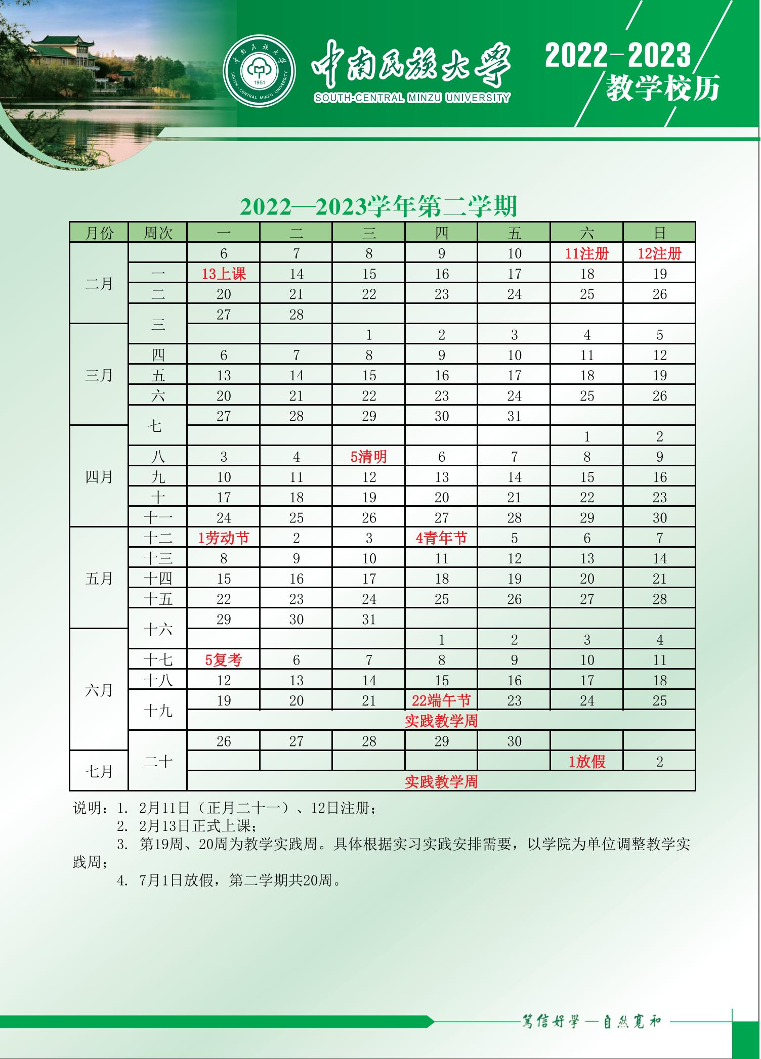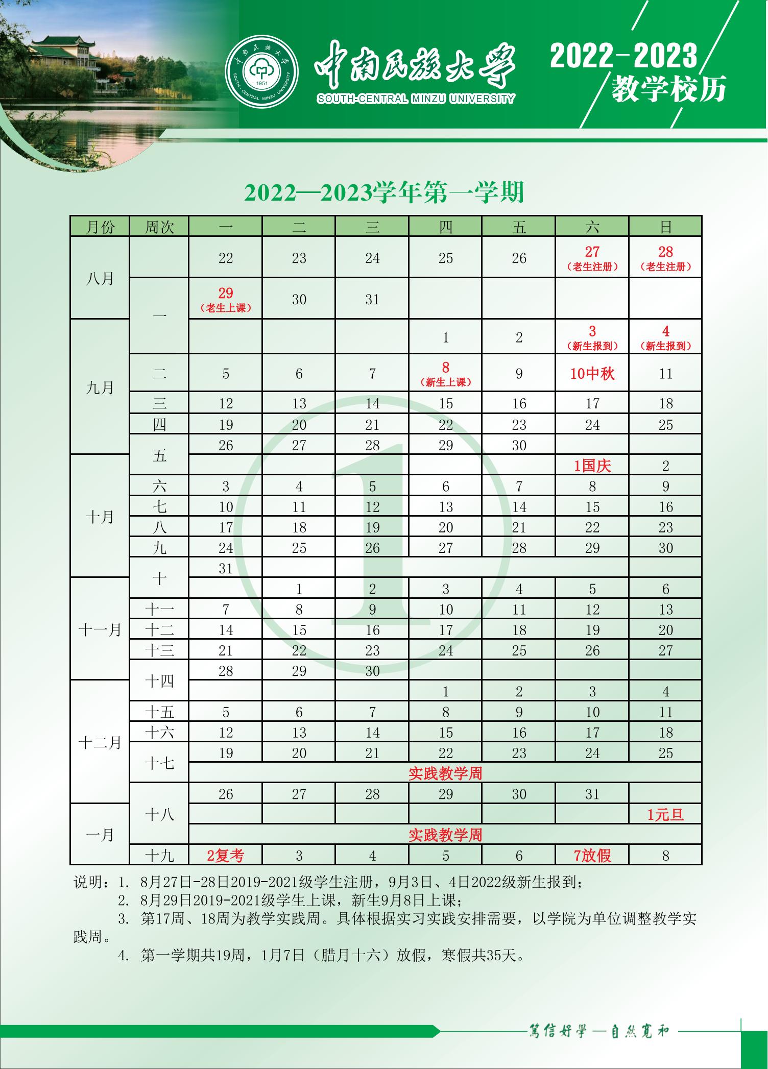 2022-2023学年度教学校历