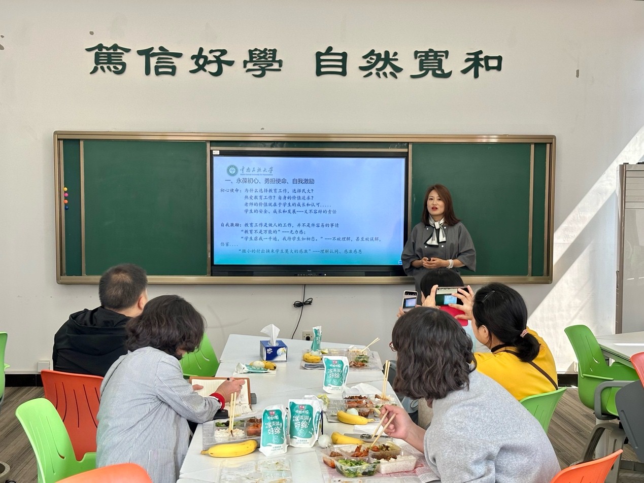 刘老师首先指出:教育工作者必须坚守“以学生为中心”理念,永葆初心、勇担使命,肩负起立德树人的艰巨任务。之后,从“围绕学生、关照学生、服务学生”“一个台账、两支队伍、三全育人”“强化学习、持续赋能、相互成就”等三部分,结合自己12年辅导员工作经历,详细分析了学生在学业、心理、规划发展等各方面体现出的特征、需求与面临的困惑,阐述了如何从信任建立、沟通交流、危机干预、家校联动等多方面全员、全过程、全方位做好引导、服务、管理等工作,同时强调教师要不断加强学习与实践,持续自我激励与赋能,用优秀的品格、开拓的眼界、精湛的专业去感染、培养、成就每一位学生。讲座后,教师们就班导师工作开展、学生培养等问题与刘老师展开积极交流与探讨。