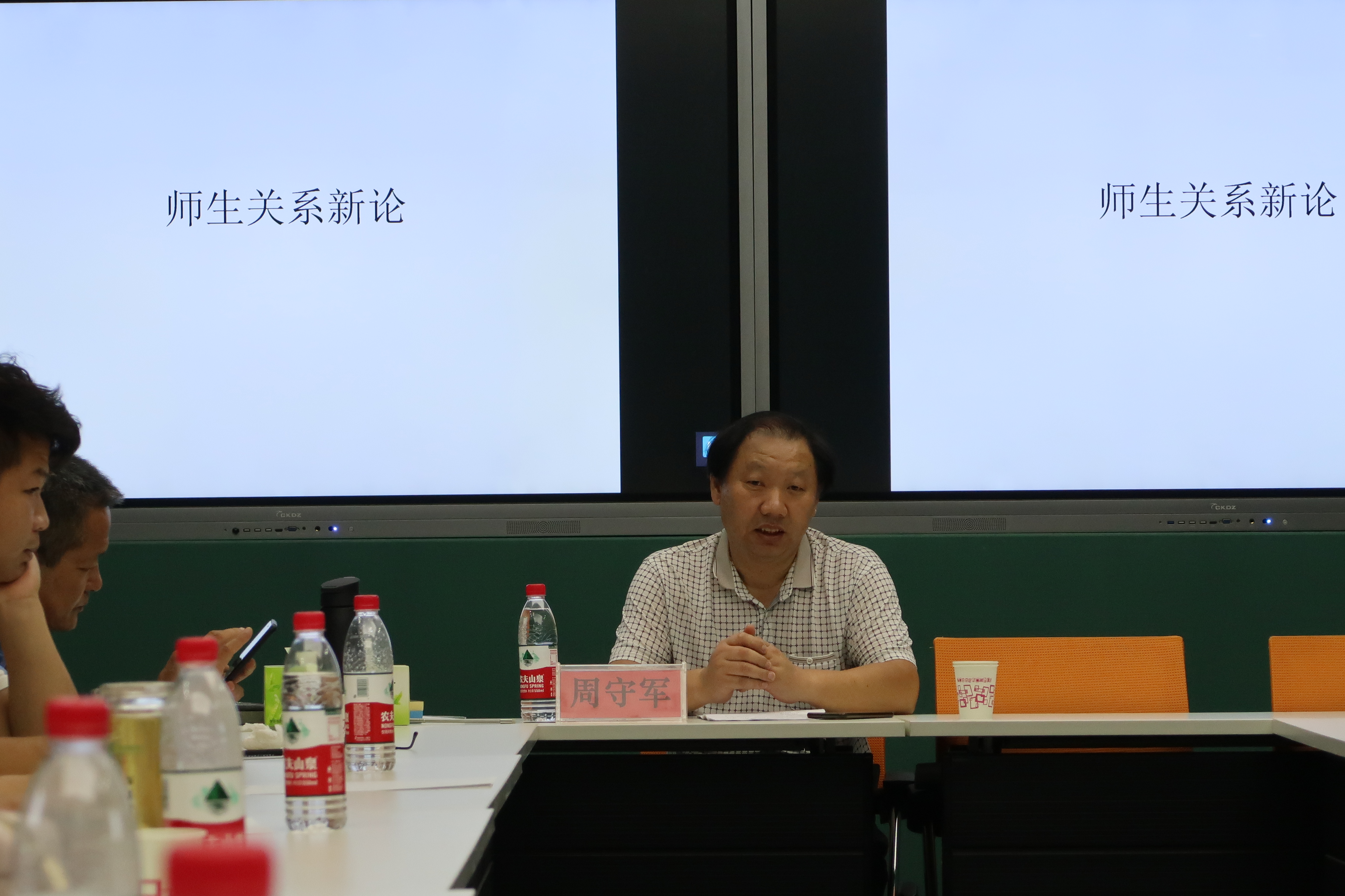 最后周守军教授围绕“师生关系新论”与老师们探讨交流,周教授分析了传统师生关系的观点和公共视角下的师生关系观,由此总结出师生关系的社会性、共价值性、共在共生性三大特点以及建设师生关系公共性的非排斥性、公利性和平等性三大原则,最后引导教师结合自己的教师经历,反思自己的师生关系观与行为。