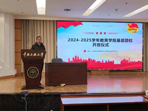 教育学院团委书记艾力亚尔介绍了本次团校开班情况和课程安排,要求学生干部要有责任与担当,要始终秉承“从同学中来,到同学中去”的工作理念,在服务同学中实现自我价值。同时强调,全体学员要坚持以团校为武装思想的阵地,扎实学好知识,遵守团校纪律。