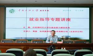 本次讲座主要分为“提升自我能力”和“面试注意事项”两个主题。黄磊表示,疫情对国内行业竞争和经济产生了巨大影响,同时也影响到了大学生就业,他进一步分析了当代大学生在后疫情时代下的就业前景,激发同学们对“提升自我能力”的思考。