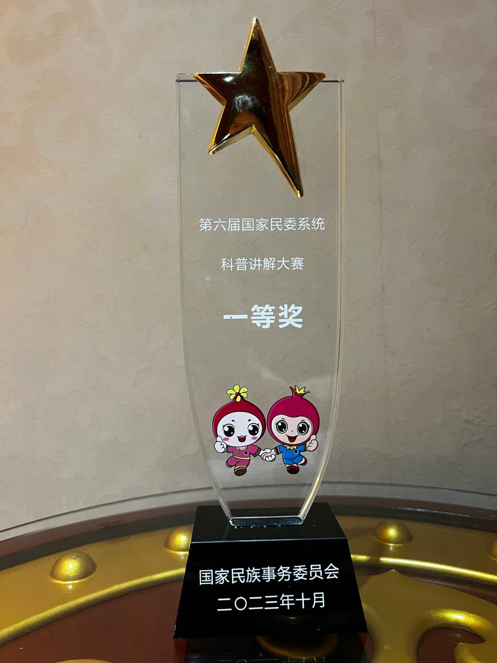 (图为大赛一等奖的奖杯)