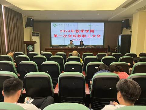 会议首先介绍了徐莹、田雪、许红慧、申静洁四位新教师;传达学习了学校秋季开学干部会议精神、学校2024年下半年工作要点;对暑期各项工作进行了总结;会议通报了毕业生就业情况;结合学校新学期工作要点,对学院新学期各项工作进行了布置。