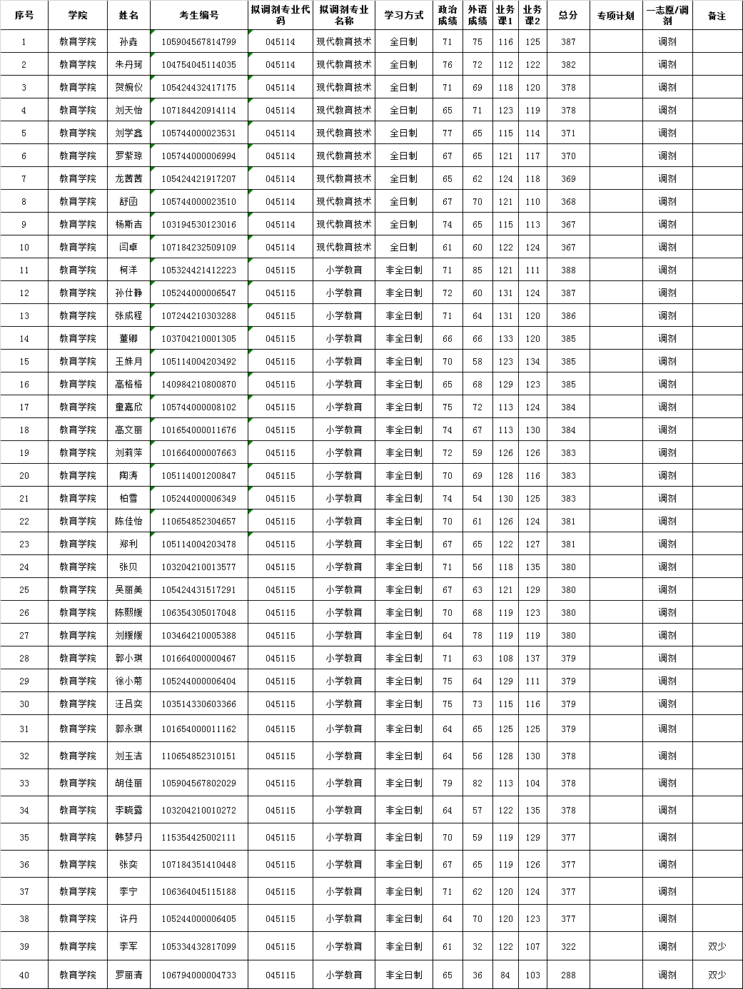 根据教育学院 2024 年硕士研究生招生复试工作安排,调剂考生复试人员名单如下: