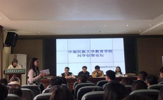 康翠萍教授首先发言,她给大家讲述了教育学院举办“问学创智”论坛的初衷和思路,希望同学们在问学、思学、研学中交流与辩论,从而养成良好的学术思维品质,提升理性思维能力。她表示,学术讲坛要还原“问学创智”论坛的本义,鼓励大家“头脑风暴”、观点碰撞,以《家庭教育促进法》为切入点,通过分享、讨论、追问、解答与辩论等方式重建研究生学习的良性大循环。