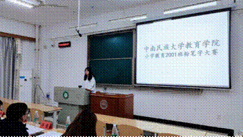 最终,比赛最终紧张热烈的气氛中落下帷幕。付盼同学获得一等奖,卢丹红、张铮、邓婧雯3位同学获得二等奖,李宇哲、黄廷颖、陈旭阳、裴旭和左淑玲5位同学获得三等奖。无论是参赛选手还是现场观摩的同学都表示,通过粉笔字比赛,同学们学习师范生技能的积极性得到很大提高,要成为一名合格的小学老师,要学习的还有很多,让我们下一个系列比赛再见!