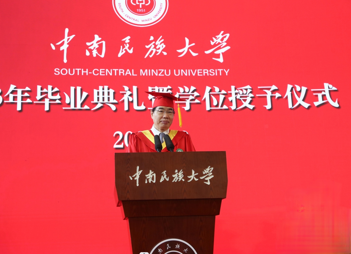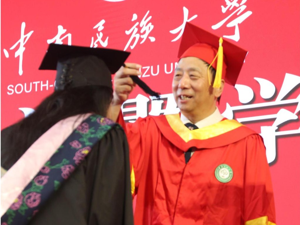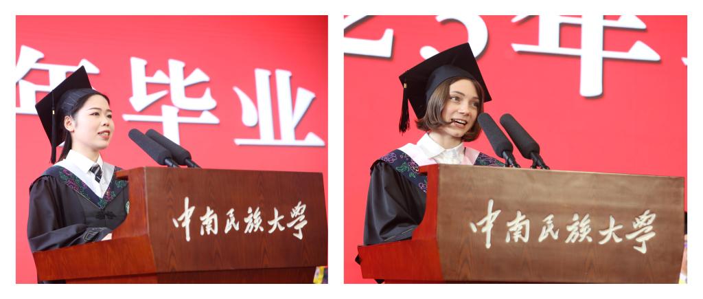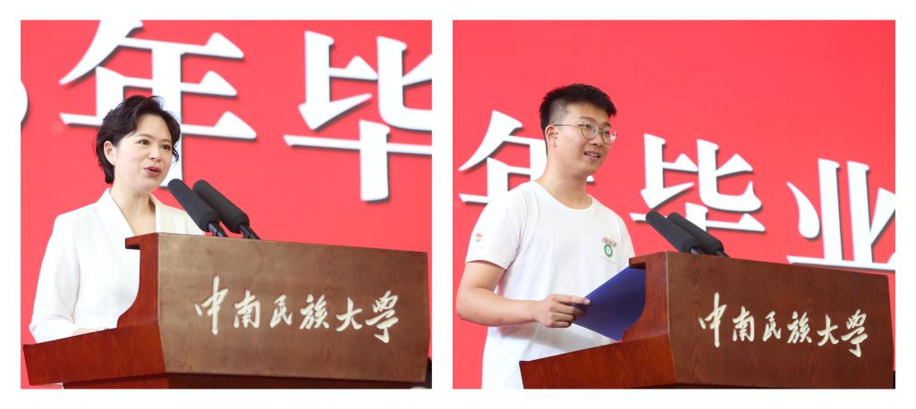 即将前往重庆山区任教,来自数统学院的刘姗作为毕业生代表发言:“四年的成长,让我们有幸学问思辨和励志笃行;四年的学习,让我们有幸汲取老师博采众长的专业知识和锐意进取的科研精神;四年的生活,让我们有幸结识志同道合的朋友和温柔可亲的室友。四年民大人,一生民大情。今天,我们毕业了,但是我们永远不会忘记‘笃信好学,自然宽和’的校训和母校的悉心栽培。”
