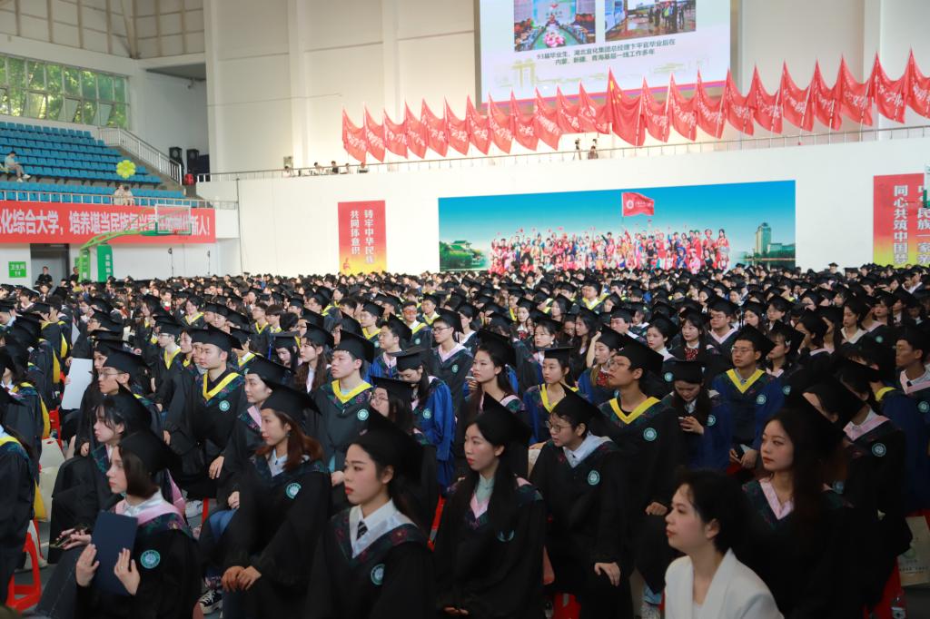 万水千山梦未远,青春凌云志更高。李金林用1991届毕业生、“全国优秀县委书记”虎强和2023届毕业生谭宇航的故事来勉励毕业学子们胸怀“国之大者”、笃定“报国之志”,把自身发展与国家命运紧密联系在一起,到新时代新天地中去施展抱负、建功立业;用1993届毕业生、投身半导体显示和集成电路研究的张建华和学校民族地区乡村振兴服务团队的时代贡献来激励同学们潜心好学、勇挑重担;用1993届毕业生、湖北宜化集团总经理卞平官的基层一线奋斗之路鼓励同学们涵养吃苦精神,主动走出“舒适区”,寻求磨砺和成长;用2007届毕业生唐元贵带领村民脱贫致富的故事和2023届毕业生马志智、帖金博4年来协助行动不便室友的无私奉献和扶危济贫的精神启发同学们用包容互助的心态面对困境,走出破局之路。