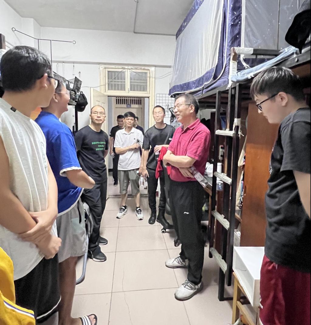 连日来,武汉市高温、雷暴天气交织不断,6000余名暑期留校学生的学习生活状况始终牵动着学校领导的心。7月8日下午,校党委副书记、副校长宋发军与党委学生工作部及部分学院相关负责人一同走访慰问暑期留校学生,具体了解他们的学习生活情况,并就进一步做实做细其教育管理工作提出具体要求。