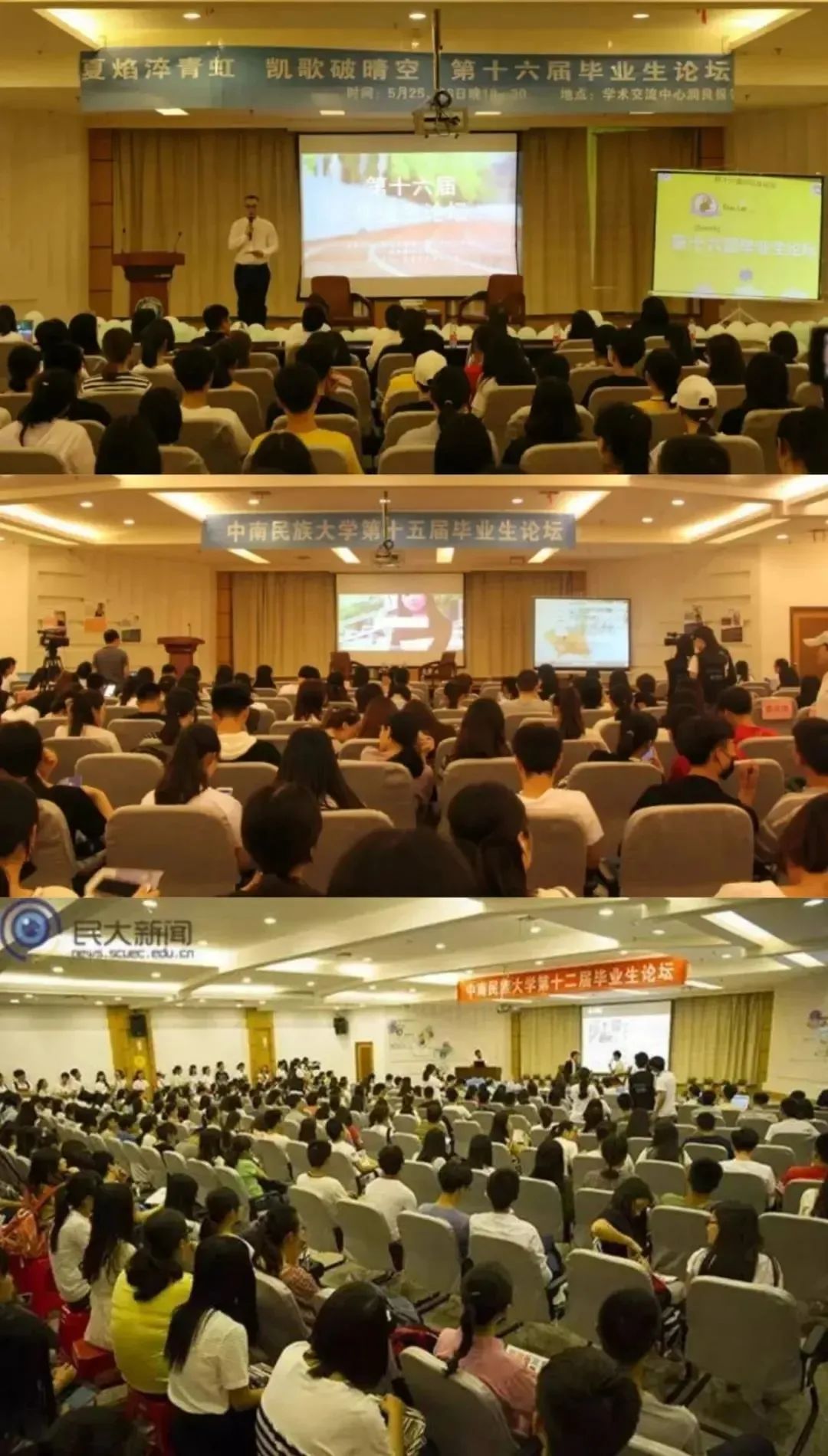 十九年里,毕业生论坛一直以“坚持民大特色,秉承优良传统,增强创新意识”为指导思想,以“引领校园文化健康发展,促进青年学生成长成才”为目标,通过不断创新活动方式,吸引着越来越多学子前来分享与观看。