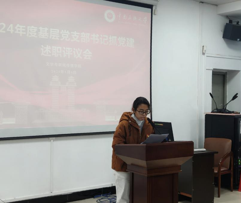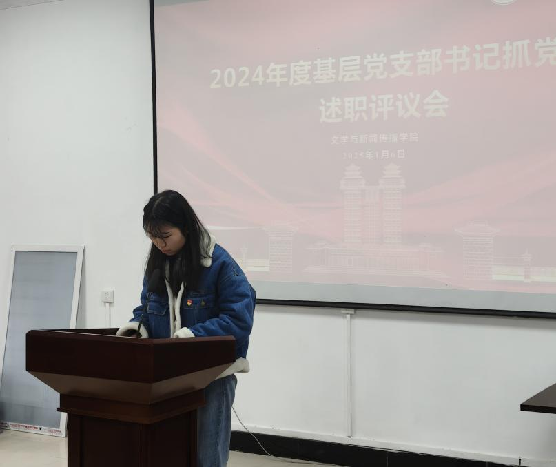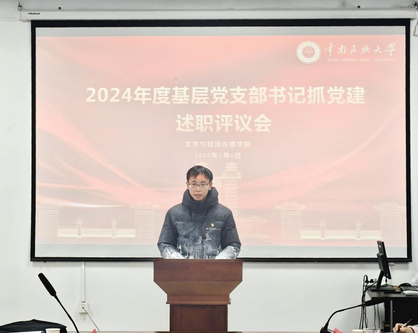 根据学校党委工作要求,2025年1月6日下午,学院召开2024年度基层党支部书记抓党建述职评议会,学校党建述职评议督导组成员庞建华、谢村,文学与新闻传播学院“两委”委员,学院各基层党支部书记,师生党员代表参加会议。会议由学院党委书记谢岚主持。