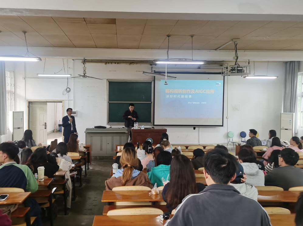 本站讯(通讯员:李妍 摄影:李妍)10月26日,学院邀请湖北广电长江云新媒体集团编委、视频创意中心主任罗晓贤在文一楼201教室做“解构视听创作 AI赋能新质生产力”主题讲座。讲座由新闻学教研室王江蓬老师主持,学院部分教师、博士生、硕士生及本科生参加。