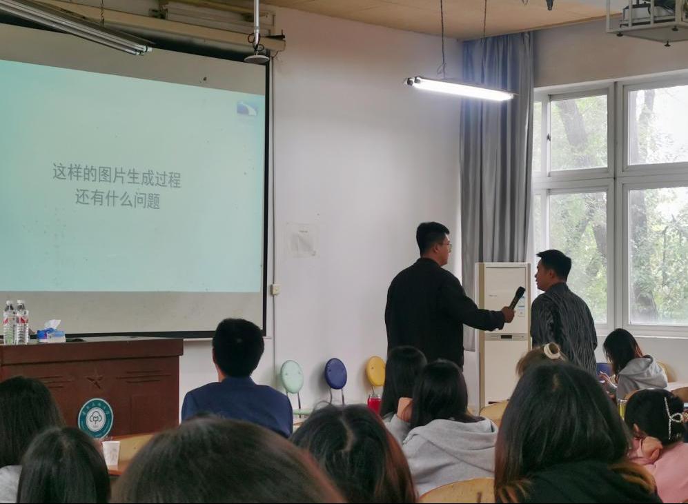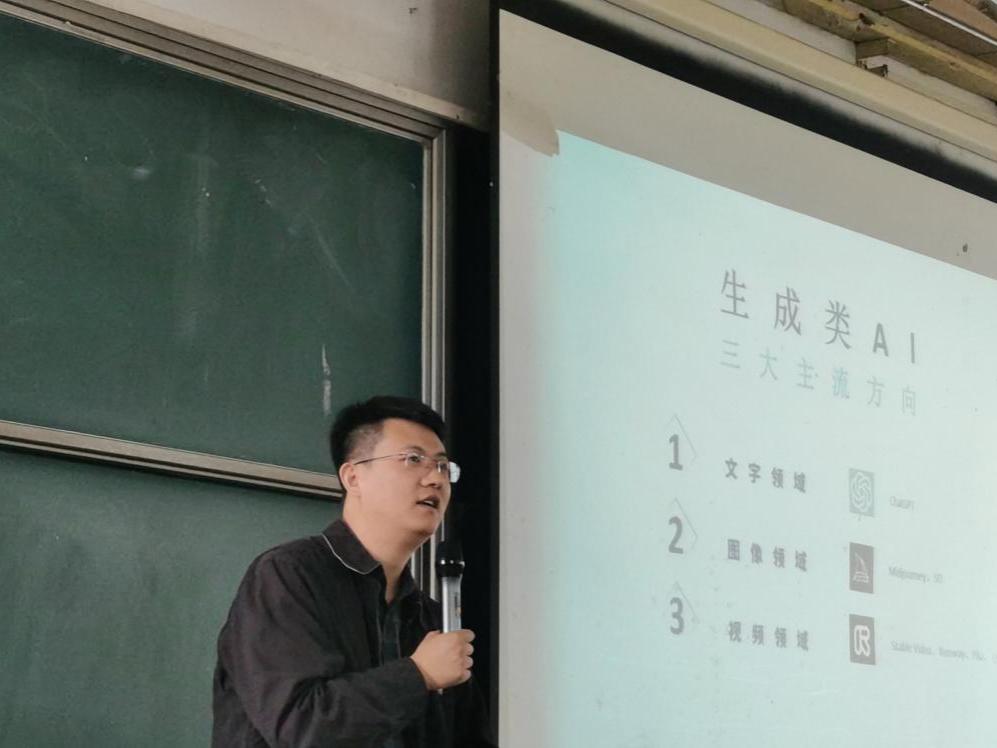 罗晓贤主任首先从新媒体时代传统媒体所面临的挑战出发,指出尽管媒体传播视角与文稿的调性正在经历变革,然而新闻工作者所需具备的基础能力却从未改变。他进一步强调,即便是在AI辅助创作背景下,审美能力和创作能力仍是新闻工作者不可或缺的重要素养。罗主任结合自身的从业经验探讨了短视频创作中的结构布局、技巧运用及其创新之道,强调了借势和热点追踪的重要性,为同学们理解和掌握短视频创作提供了多维视角。随后,他以多个生成式AI软件为例,从文字、图片、视频三个方面展示了生成式AI在工作、学习中的实际运用,他指出:“技术在提升传播效果方面能力强大,但面对技术浪潮下的内容竞争,既要保持与技术的对话,也不能将导向全部交由技术。”