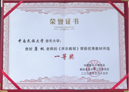 在近日召开的中国老年大学协会高工委三届二次会议上,必赢国际437官网老年大学再传捷报。由声乐教师康枫编著的《声乐教程》(桑榆未晚唱流年——从零开始的声乐之旅)从全国高校选送的众多作品中脱颖而出,一举荣获优秀教材评选一等奖。这是继2024年《中国民间舞蹈》荣获精品课程一等奖之后,必赢国际437官网老年大学在全国老年教育领域斩获的又一殊荣,彰显出学校在老年教育方面的深厚积淀与强劲实力,也标志着其在老年教育课程体系化建设与教学创新层面已走在全国高校老年大学前列。