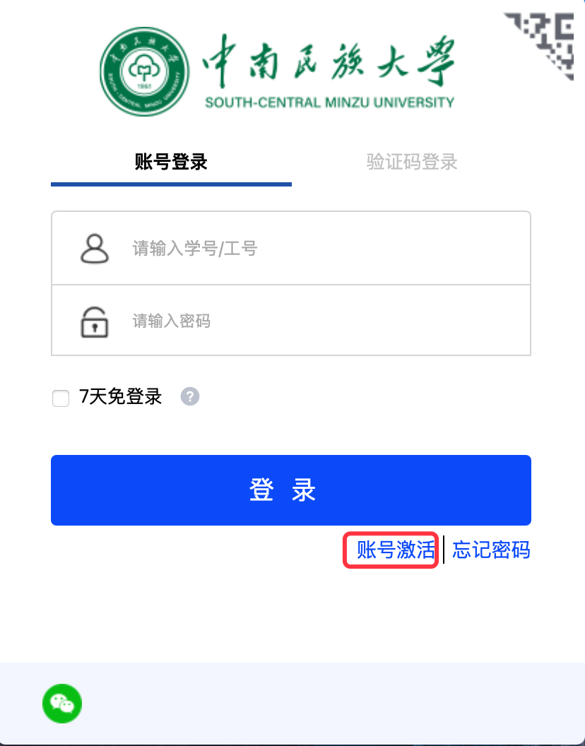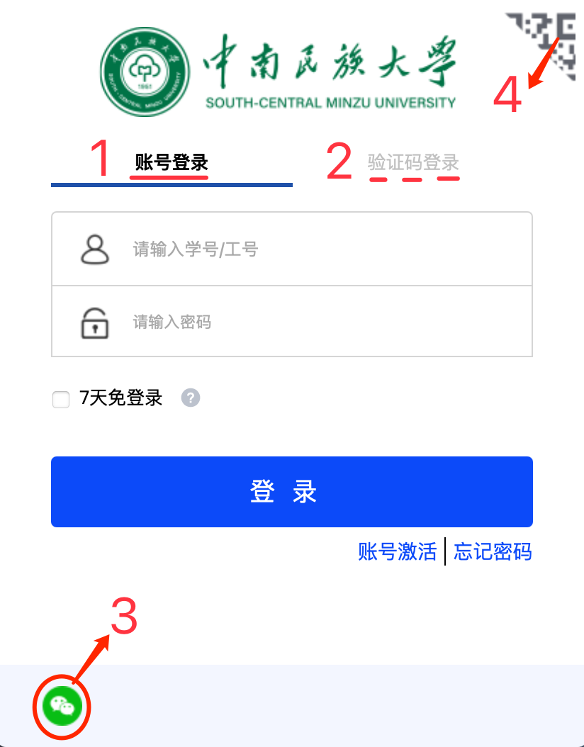 ③点击左下角“微信”图标,弹出的二维码用“微信”扫一扫实现登录验证;
