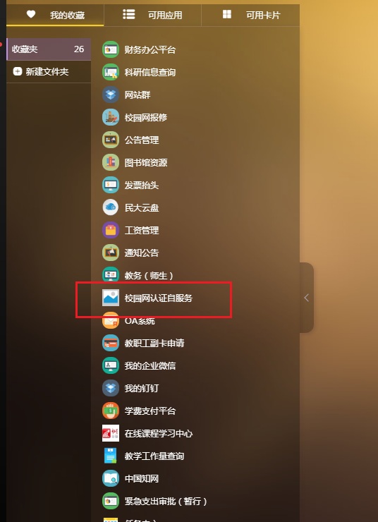 步骤2:进入到“校园网认证自服务”首页,点击左侧菜单栏“用户”选项卡,如下图所示。