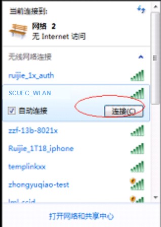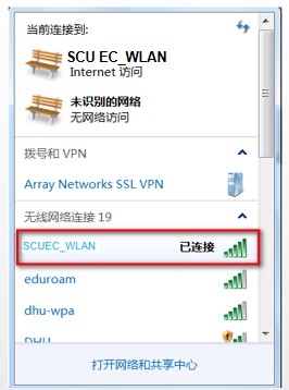 目前SCUEC_WLAN支持所有主流终端和操作系统,下面列出 Windows7 的配置方法。