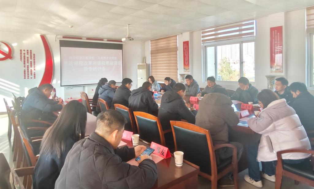 On January 13th, the College of Marxism and the College of Electronics and Information Engineering jointly held a seminar on the reform and construction of the ideological and political curriculum. Wei Dajiang, Secretary of the Party Committee of the College of Electronics and Information Engineering and Hou Jin, Vice President, Tang Zhenhua, Secretary of the Party Committee of the College of Marxism and Qu Xiaolin, Teng Shuai, Zhu Lei, Vice Presidents, as well as representatives of the teachers and counselors of the two colleges attended the meeting. The meeting was presided over by Teng Shuai.