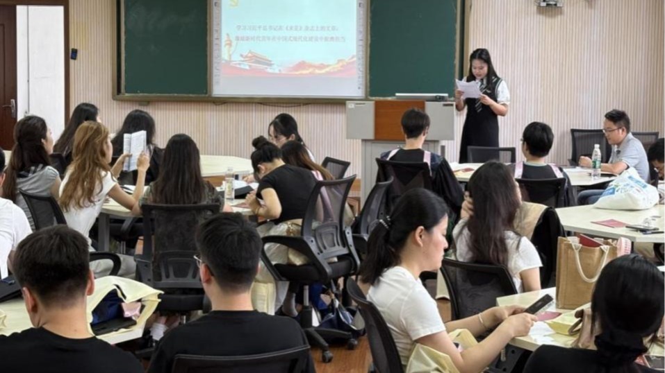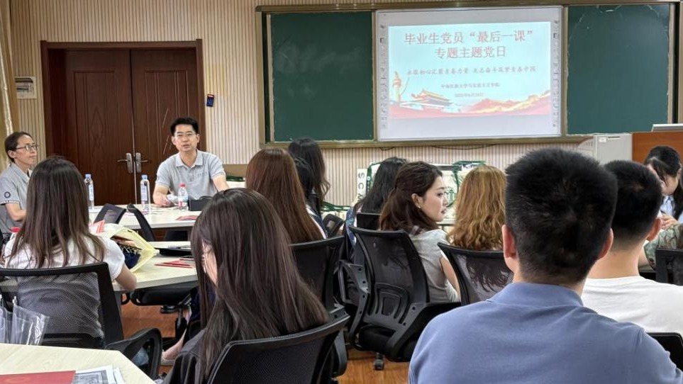 活动伊始,全体党员集中学习习近平总书记在《求是》杂志发表的重要理论文章《激励新时代青年在中国式现代化建设中挺膺担当》。随后,全体党员面对党旗,重温入党誓词,表达了对党的忠诚与热爱。毕业生党员代表先后交流发言,对学院建设发展提出意见建议并郑重承诺,无论未来身处何方、从事何种工作,都将时刻铭记党员身份,秉持以人民为中心的理念,将所学理论知识切实运用到实际工作和生活中,为实现中华民族伟大复兴的中国梦而不懈奋斗。