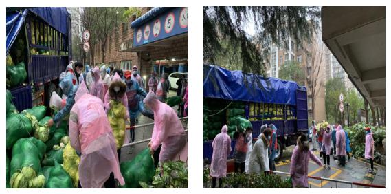 在家里还有孩子需要照顾的特殊情况下,瞿老师与爱人经与社区领导协调后,两人在同一岗位轮流置换开展工作,在社区工作人员的带领下,出色的完成了入户排查、志愿登记、门岗防控、快递分发、爱心蔬菜搬运分发等工作。“当我真正参与到志愿工作后,我才发现作为一个普通公民尤其是作为社区的一份子,就是要做一些事情才能心安,心里才觉得踏实。”