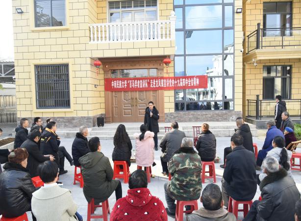 瞿晓琳副教授在恩施市白杨坪镇、太阳河镇进行了十九届四中全会精神理论宣讲。她以《以“中国之制”推进“中国之治”》为主题展开讲述,介绍了十九届四中全会的概况、《决定》产生的背景及意义、十三个方面的制度优势,阐述了坚持和完善中国特色社会主义制度、推进国家治理体系和治理能力现代化的指导思想、总体要求、总体目标和重点任务。瞿教授的报告中心突出,亮点纷呈,受到与会者广泛关注。在崔家坝镇大地龙村的院坝会上,她以农村文化生活、农民工薪资问题、农村安全问题、农民社保问题为切入点,与大地龙村村民进行深入的交流,将十九届四中全会精神以通俗易懂的语言展现出来,瞿教授的讲解生动活泼、内容丰富,村民们积极参与,反应热烈,形成了良好的互动氛围,院坝会取得圆满成功。